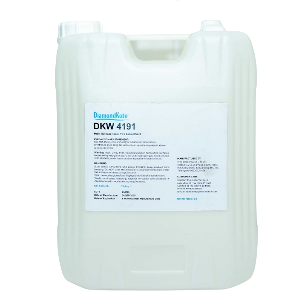 DiamondKote DKW 4191 is an experimental product designed as a durable, water-based, unfilled inside green tire paint. This formula provides excellent lubricity between the bladder and the green tire when applied correctly, resulting in excellent release, air bleed, tire uniformity, and potentially improved bladder life.